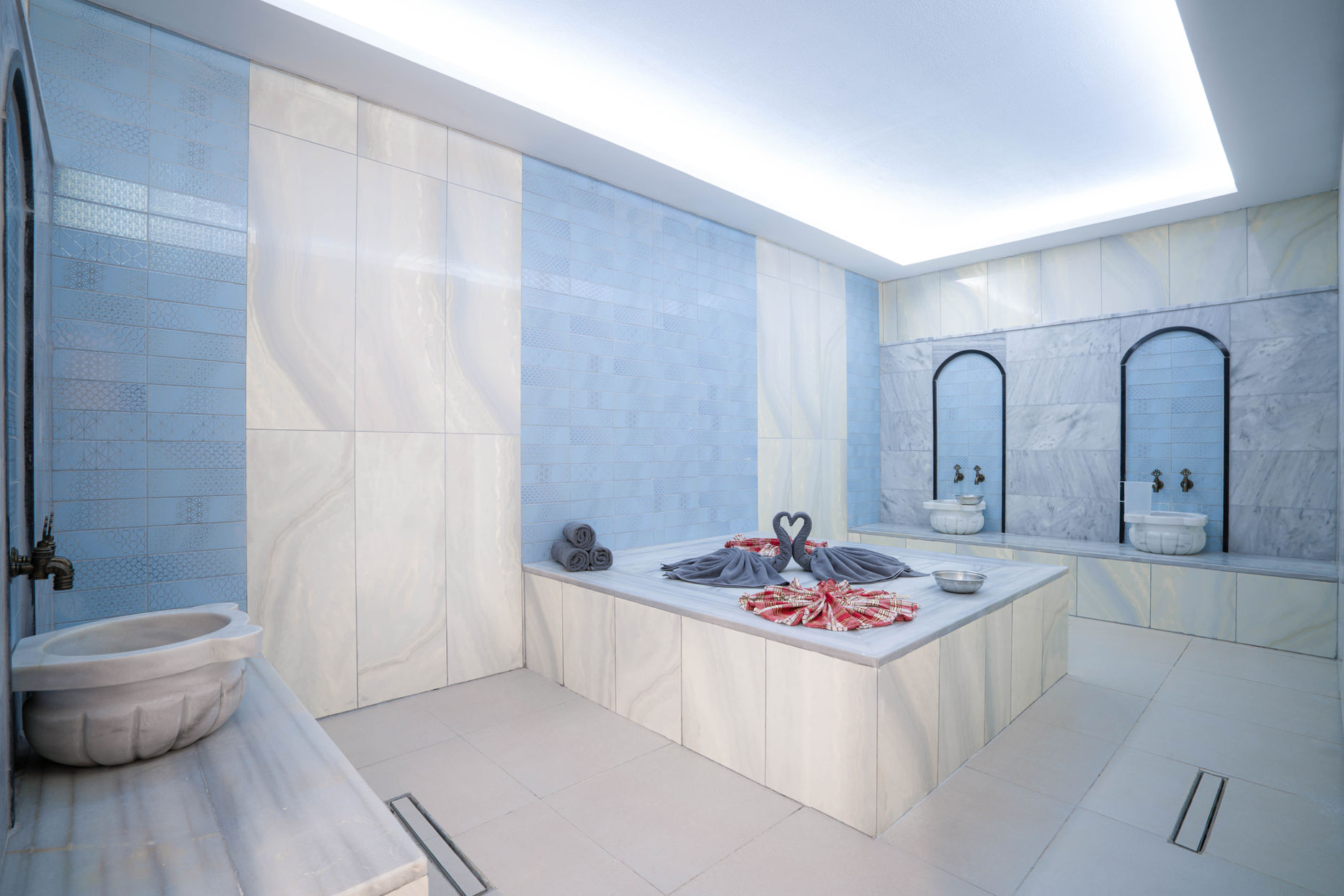 Add a warm touch to your holiday with traditional Turkish bath experience. In the purifying effect of steam and the calming atmosphere of marble, you will feel refreshed while being free from all your fatigue. Pouch and foam massage services are also offered at a fee.